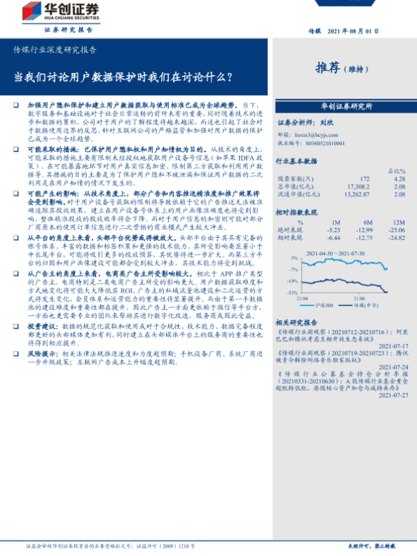 【华创证券】【20210801】当我们讨论用户数据保护时我们在讨论什么?-20页 行业研究