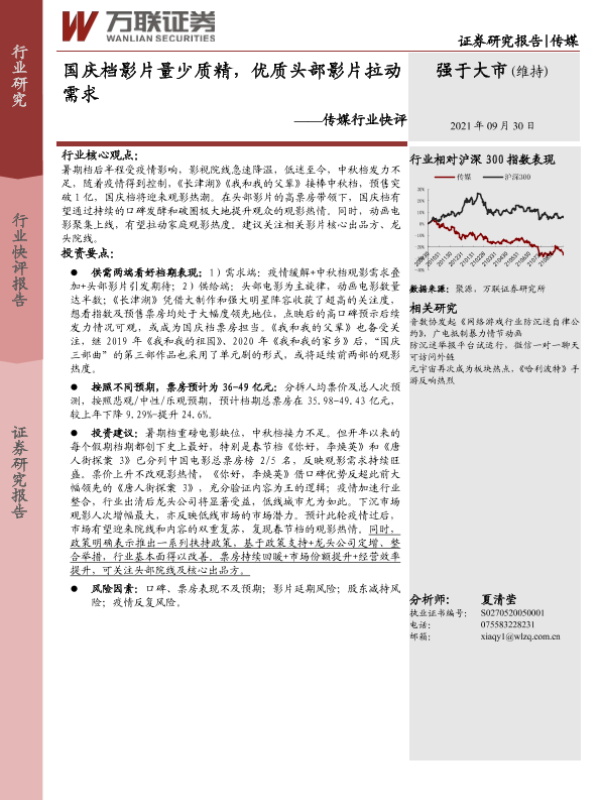 【万联证券】【20210930】国庆档影片量少质精,优质头部影片拉动需求-7页 行业研究