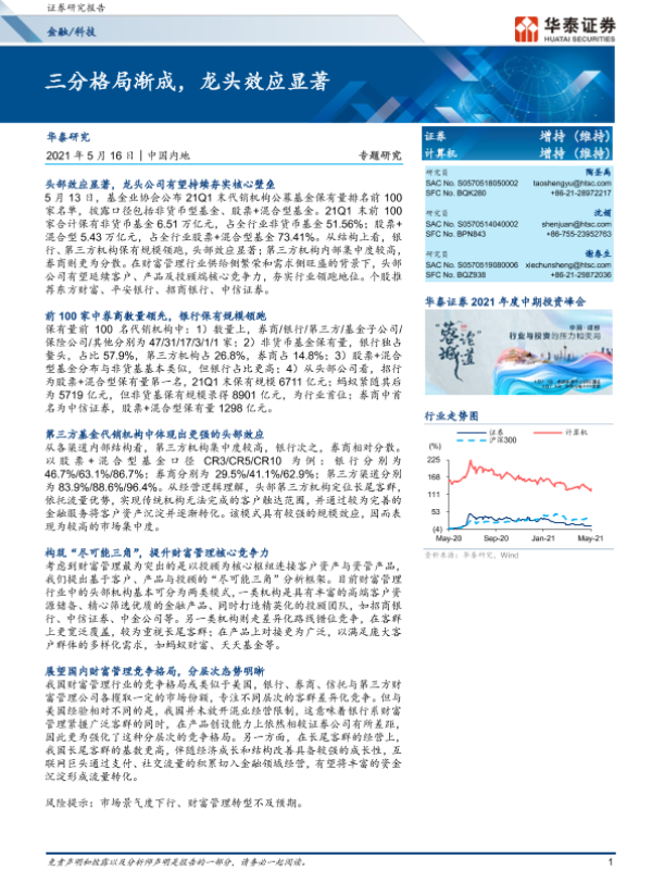 【华泰证券】【20210516】金融科技专题研究:三分格局渐成,龙头效应显著-11页 行业研究