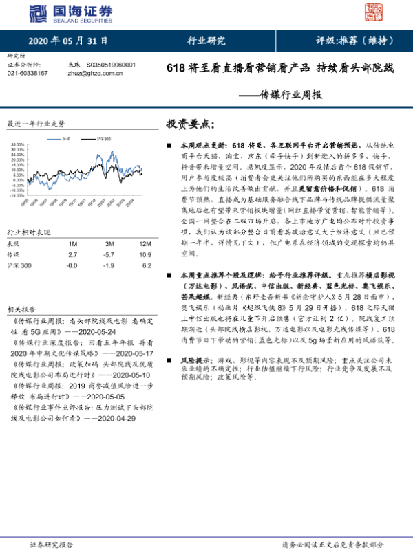 【国海证券】【20200531】618将至看直播看营销看产品 持续看头部院线-18页 行业研究