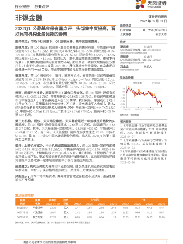 【天风证券】【20220501】2022Q1公募基金保有量点评-3页 行业研究