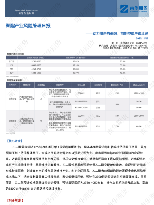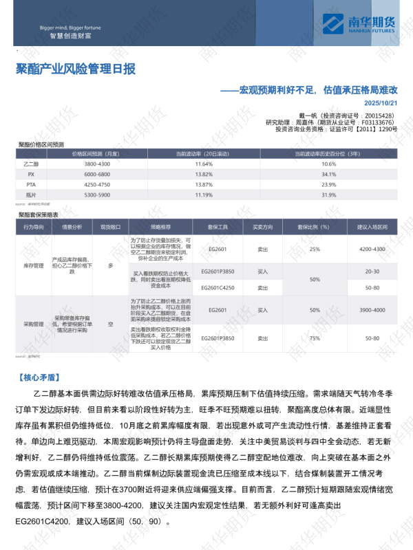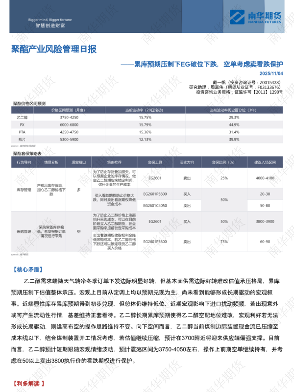 【南华研究】【202511】聚酯产业风险管理日报——累库预期压制下EG破位下跌,空单考虑卖看跌保护-4页 证券期货研究报告
