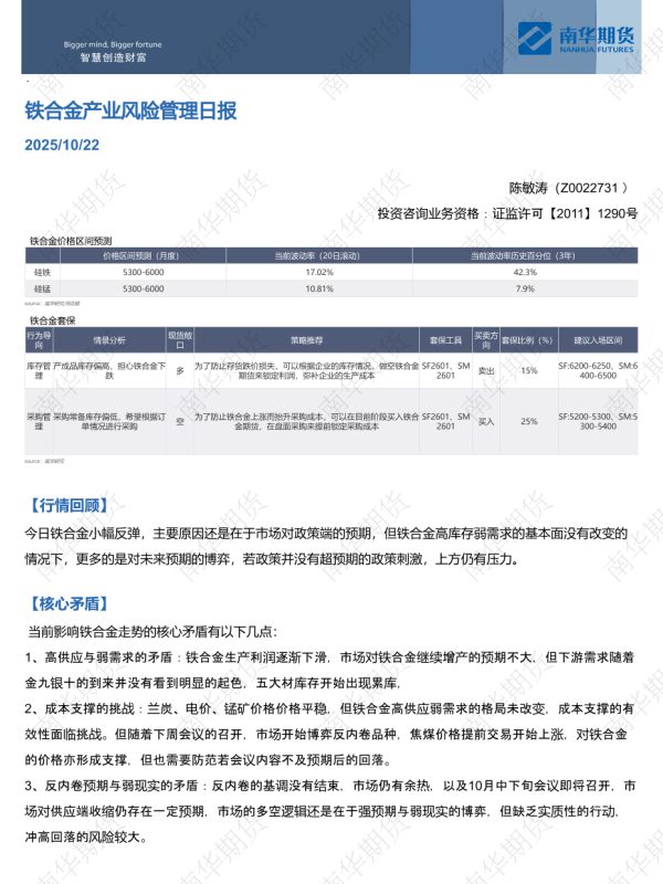 【南华研究】【202510】铁合金产业风险管理日报-6页 证券期货研究报告