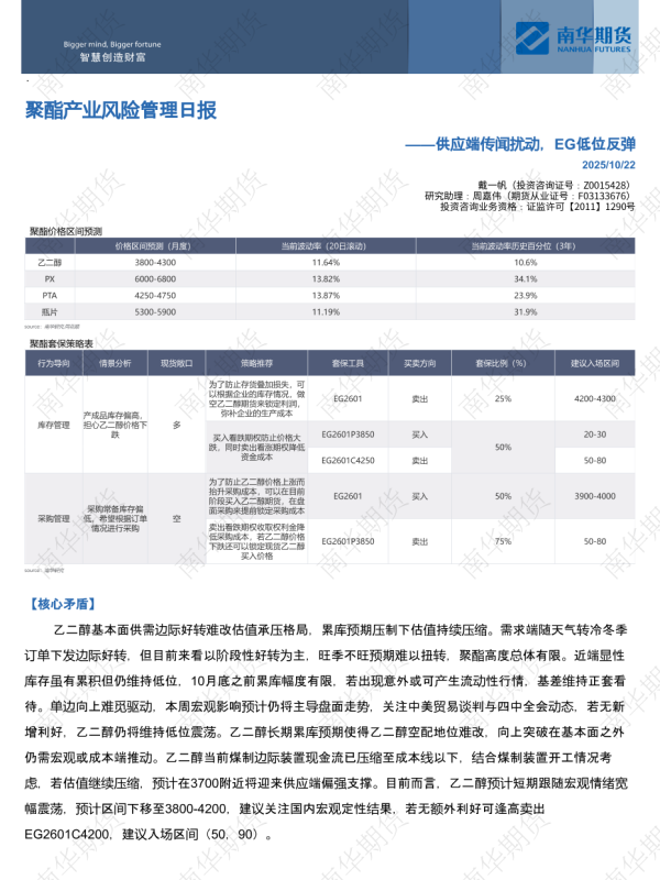 【南华研究】【202510】聚酯产业风险管理日报——供应端传闻扰动,EG低位反弹-4页 证券期货研究报告