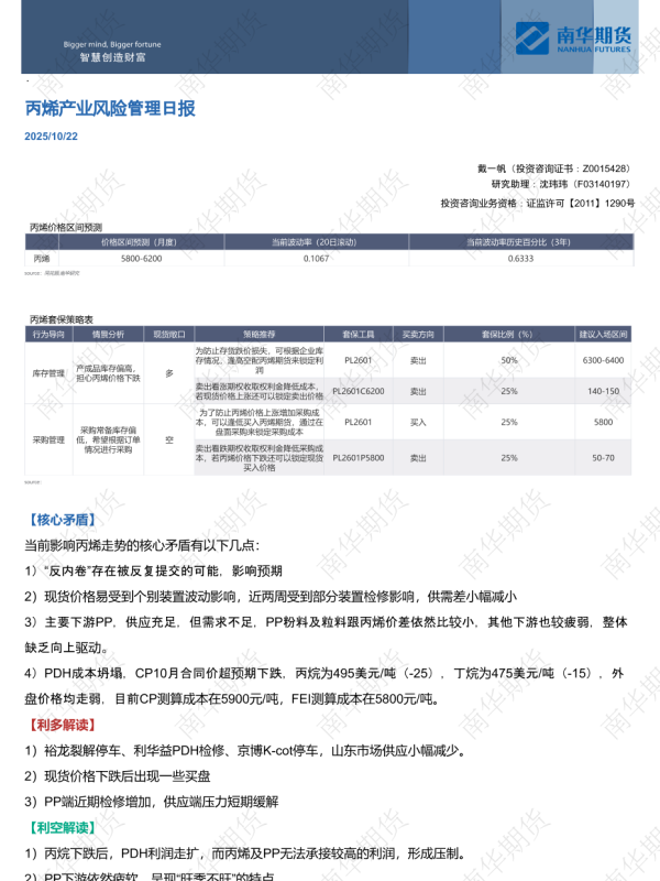 【南华研究】【202510】丙烯产业风险管理日报-7页 证券期货研究报告