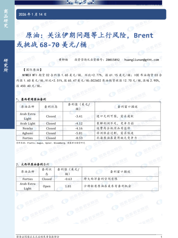 【国泰君安期货】【202601】原油_关注伊朗问题等上行风险_Brent或挑战68-70美元_桶-4页 证券期货研究报告