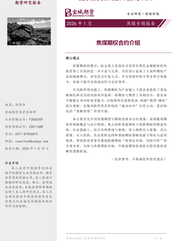 【宝城期货投资咨询部】【202601】焦煤期权合约介绍-8页 证券期货研究报告