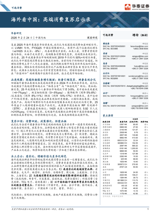 【华福证券】【202602】2H25国内高端消费显著提升,富人资产修复背景下有望延续增势-24页 证券期货研究报告