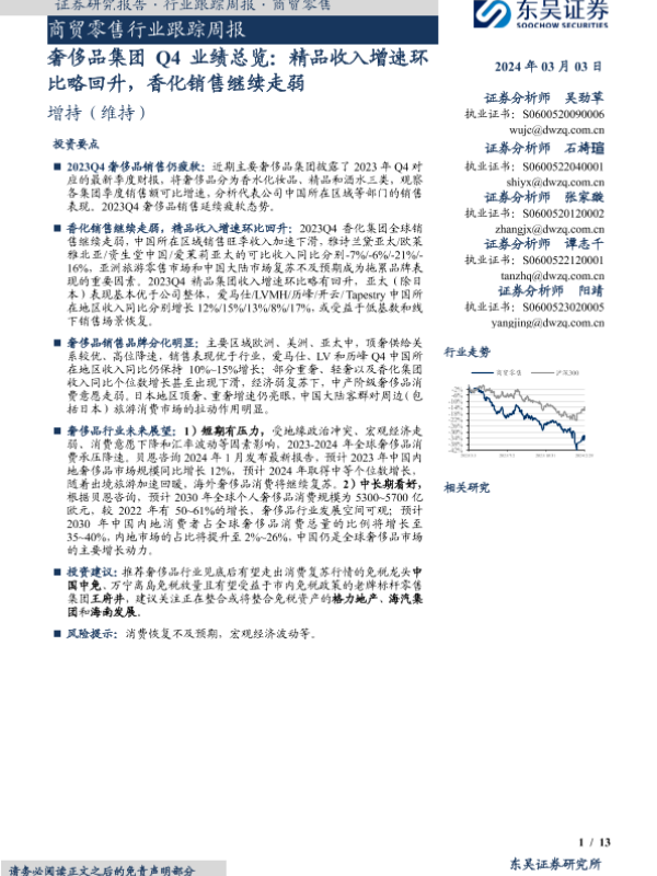 【东吴证券】【20240303】商贸零售行业跟踪周报:奢侈品集团Q4业绩总览-13页 行业研究