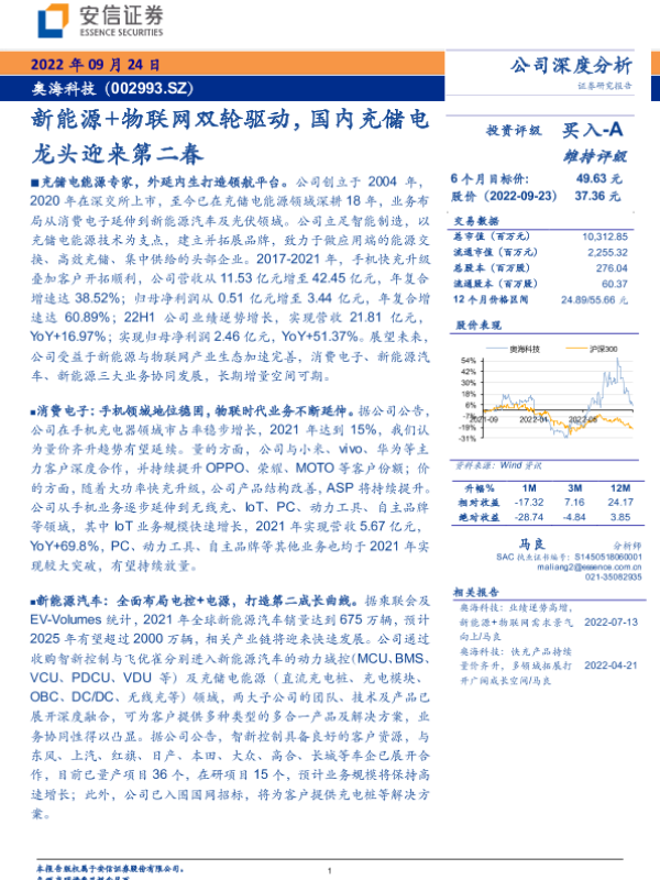 【安信证券】【20220924】深度报告-20220924-安信证券-奥海科技-002993.SZ-新能源+物联网双轮驱动_国内充储电龙头迎来第二春-40页 行业研究