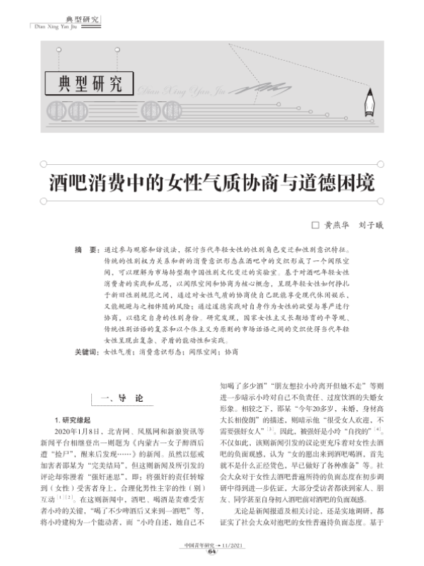 【中国青年研究】【202110】酒吧消费中的女性气质协商与道德困境-10页 学术论文