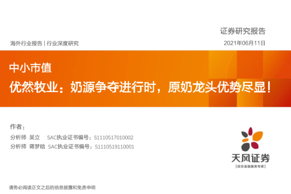 【天风证券】【20210611】中小市值:优然牧业,奶源争夺进行时,原奶龙头优势尽显!-35页 行业研究