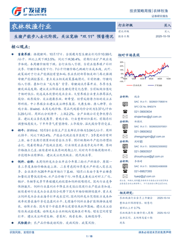 【广发证券】【202510】农林牧渔行业投资策略周报:生猪产能步入去化阶段,关注宠物“双11”预售情况-18页 证券期货研究报告