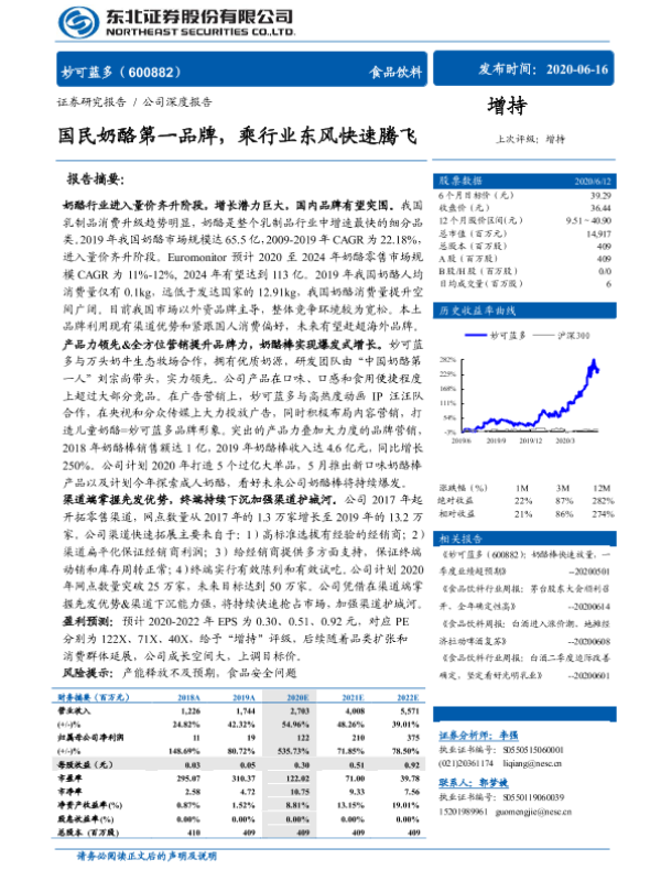 【东北证券】【20200616】妙可蓝多:国民奶酪第一品牌,乘行业东风快速腾飞-34页 行业研究