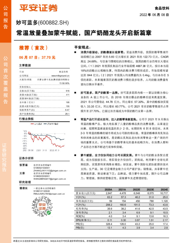 【平安证券】【20220609】常温放量叠加蒙牛赋能,国产奶酪龙头开启新篇章-25页 行业研究