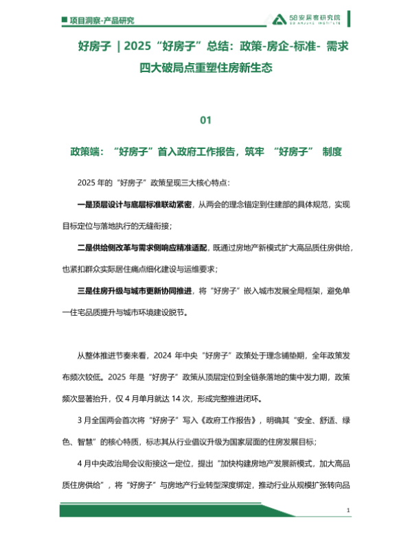 【58安居客研究院】【2025】好房子 | 2025“好房子”总结:政策-房企-标准-需求-20页 行业研究