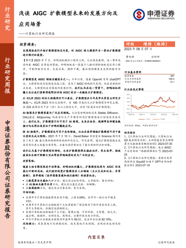 【申港证券】【20230807】浅谈AIGC扩散模型未来的发展方向及应用场景-10页 行业研究