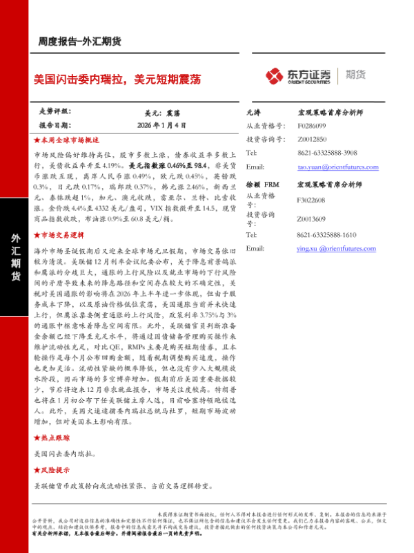 【东证期货】【202601】美国闪击委内瑞拉,美元短期震荡-12页 证券期货研究报告
