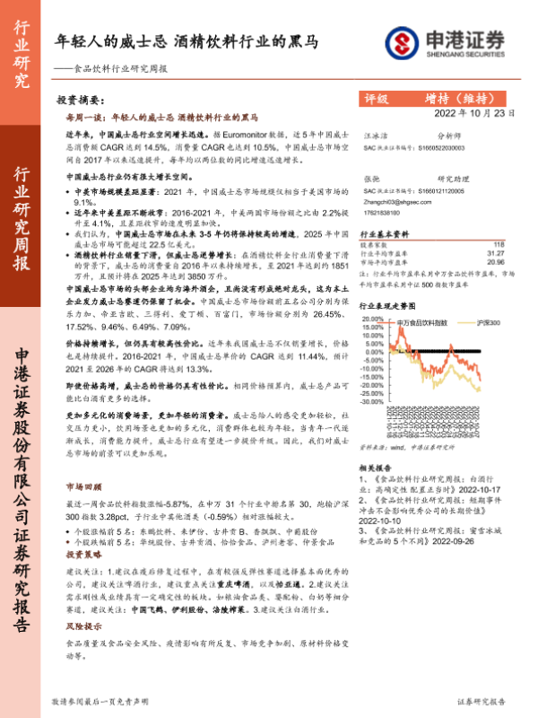 【申港证券】【20221023】20221023-申港证券-食品饮料行业研究周报:年轻人的威士忌,酒精饮料行业的黑马-10页 行业研究