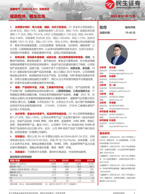 【民生证券】【20240519】威腾电气-688226.SH-深度报告:威震乾坤,腾龙出海-26页 行业研究