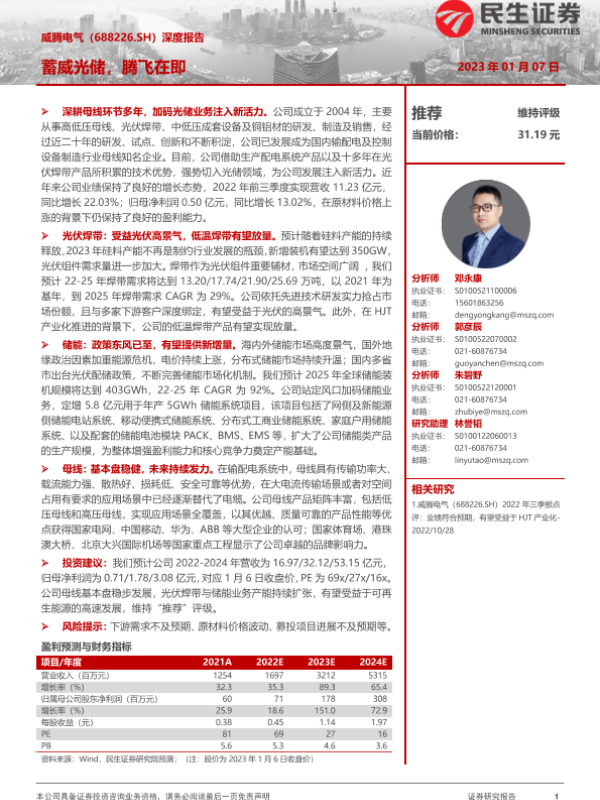 【方正证券】【20240429】威腾电气(688226)双主业奋楫笃行,储能线跃威之势-40页 行业研究