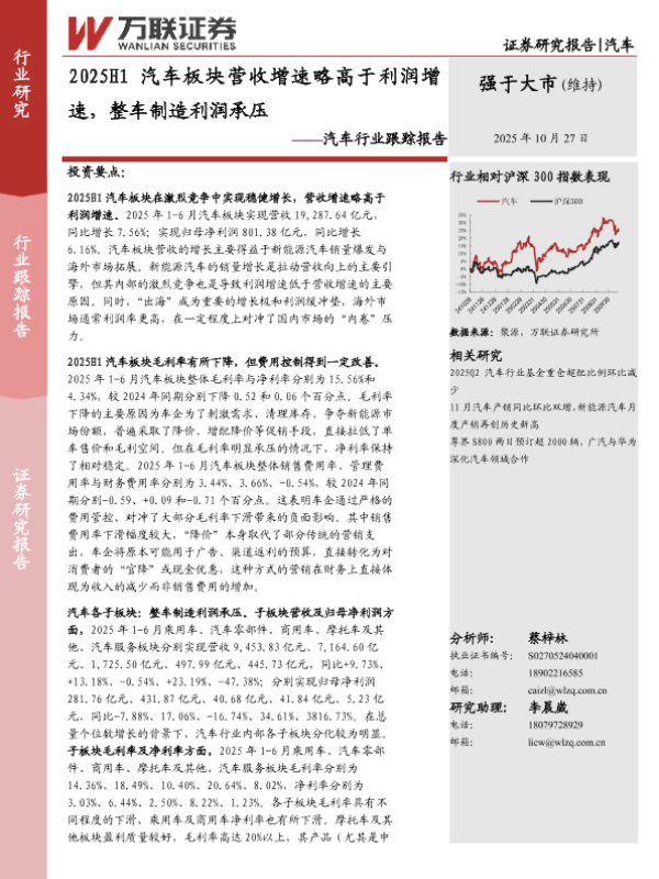 【万联证券】【202510】2025H1汽车板块营收增速略高于利润增速,整车制造利润承压-8页 证券期货研究报告