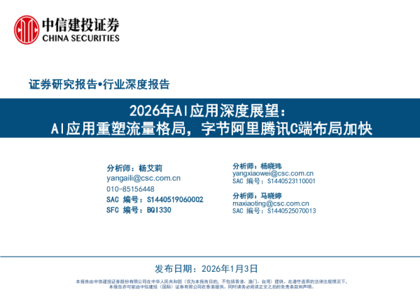 【中信建投证券】【202601】2026年AI应用深度展望:AI应用重塑流量格局,字节阿里腾讯C端布局加快-53页 证券期货研究报告