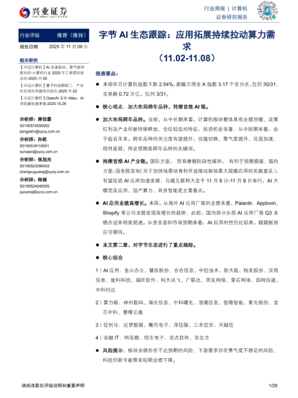 【兴业证券】【202511】字节AI生态跟踪:应用拓展持续拉动算力需求-26页 证券期货研究报告