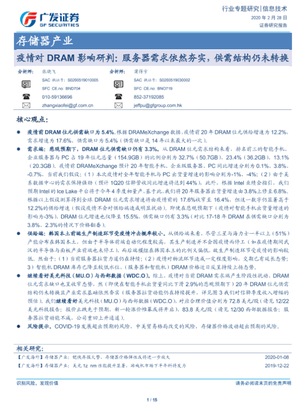 【广发证券】【20200228】疫情对DRAM影响研判:服务器需求依然夯实,供需结构仍未转换-15页 行业研究