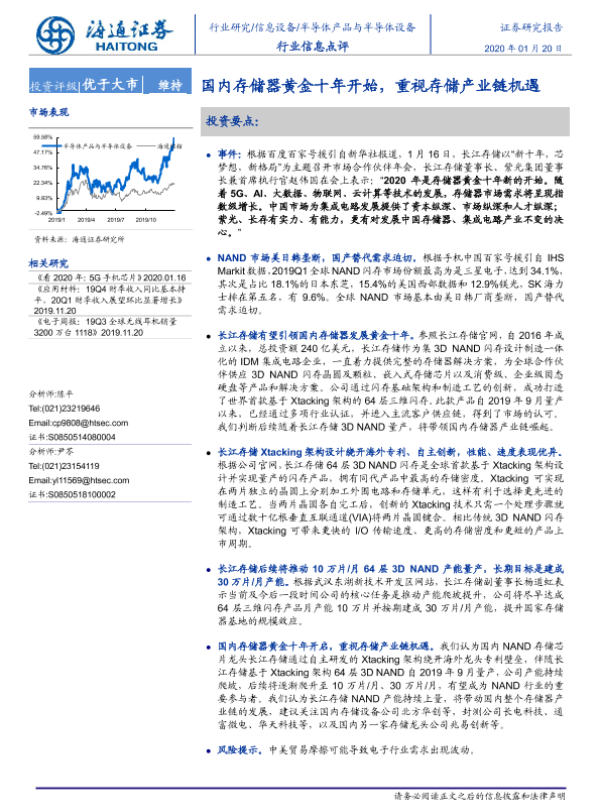 【海通证券】【20200120】20200120-海通证券-半导体产品与半导体设备行业信息点评:国内存储器黄金十年开始,重视存储产业链机遇-2页 行业研究