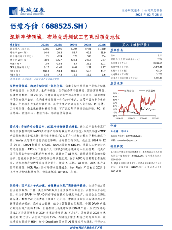 【长城证券】【20250228】深耕存储领域,布局先进测试工艺巩固领先地位-27页 行业研究