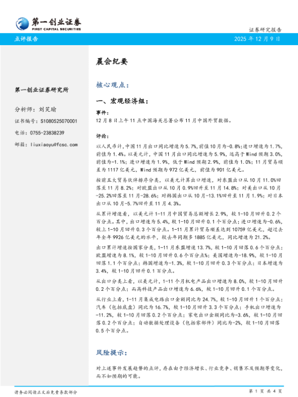 【第一创业证券】【202512】晨会纪要-4页 会议纪要