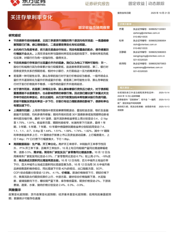 【东方证券】【202510】固定收益市场周观察——关注存单利率变化-14页 证券期货研究报告