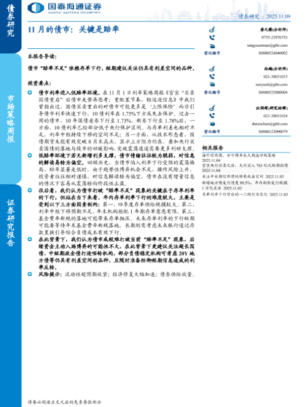 【国泰海通证券】【202511】11月的债市:关键是赔率-12页 证券期货研究报告