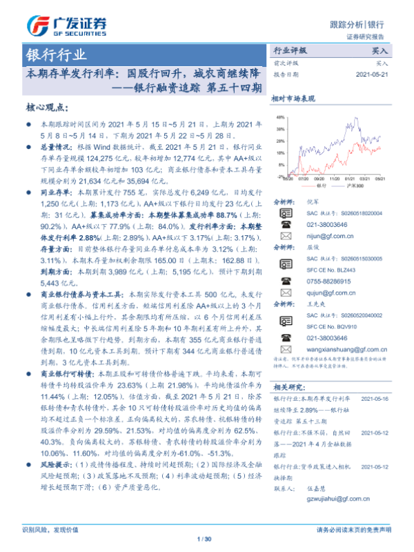 【广发证券】【20210521】本期存单发行利率:国股行回升,城农商继续降 ——银行融资追踪第五十四期-30页 行业研究