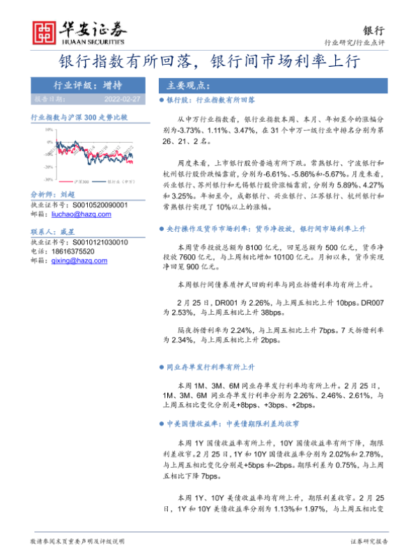 【华安证券】【20220227】银行业:银行指数有所回落,银行间市场利率上行-22页 行业研究