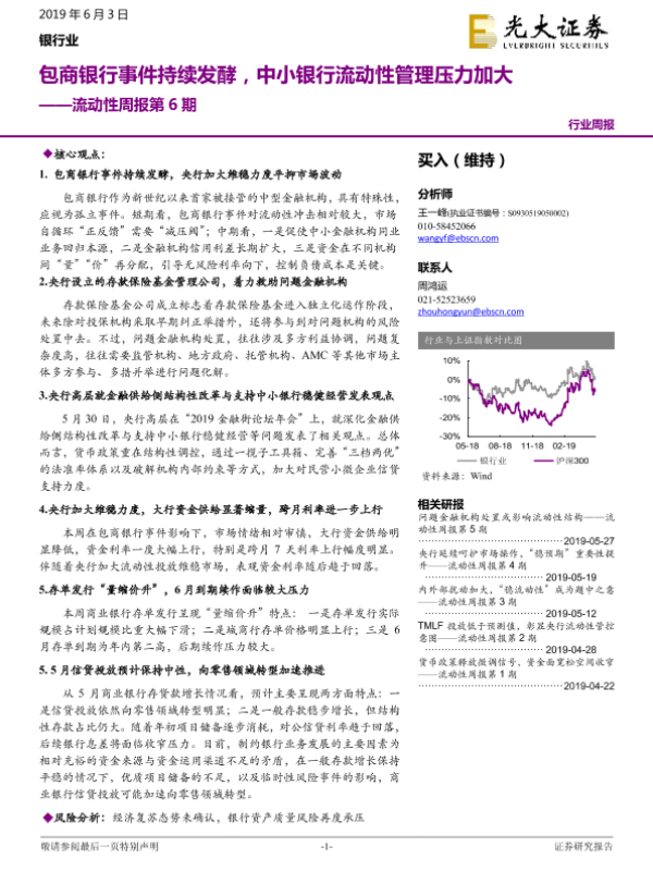 【光大证券】【20190603】银行业流动性周报第6期:包商银行事件持续发酵,中小银行流动性管理压力加大-10页 行业研究