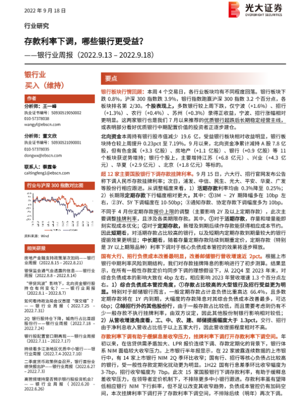 【光大证券】【20220918】存款利率下调,哪些银行更受益?-12页 行业研究