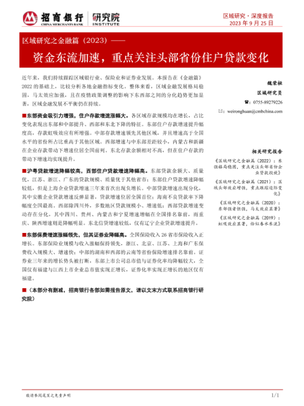 【招商银行】【20230925】区域研究之金融篇(2023)——资金东流加速,重点关注头部省份住户贷款变化-23页 行业研究