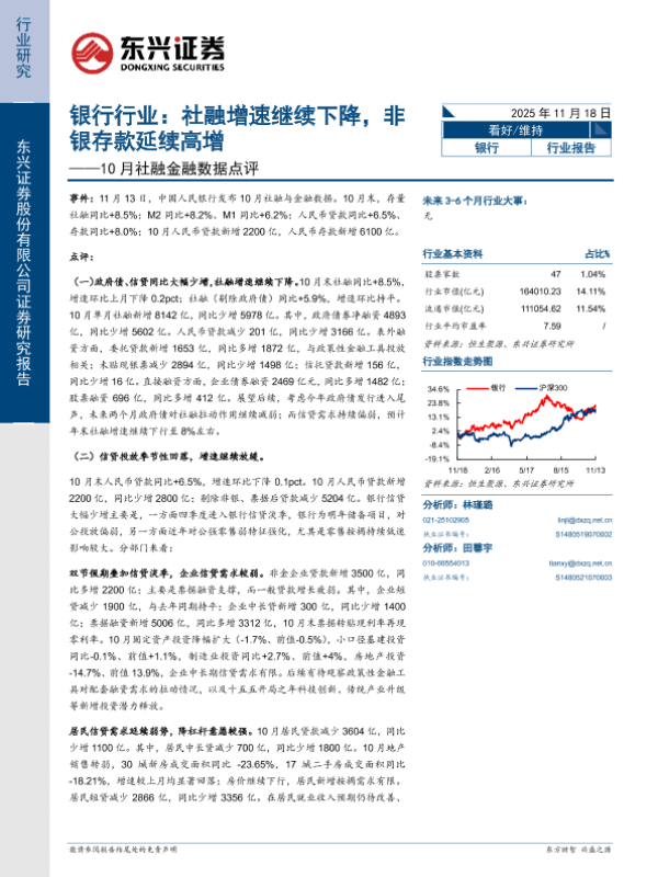 【东兴证券】【202511】银行行业:社融增速继续下降,非银存款延续高增——10月社融金融数据点评-6页 证券期货研究报告