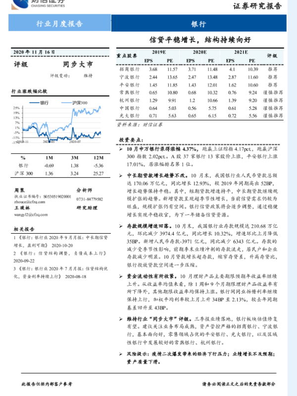 【财信证券】【20201116】银行行业月度报告:信贷平稳增长,结构持续向好-9页 行业研究