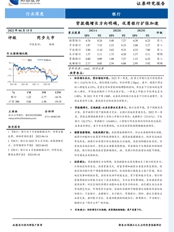 【财信证券】【20220615】银行业深度:贷款稳增长方向明确,优质银行扩张加速-17页 行业研究