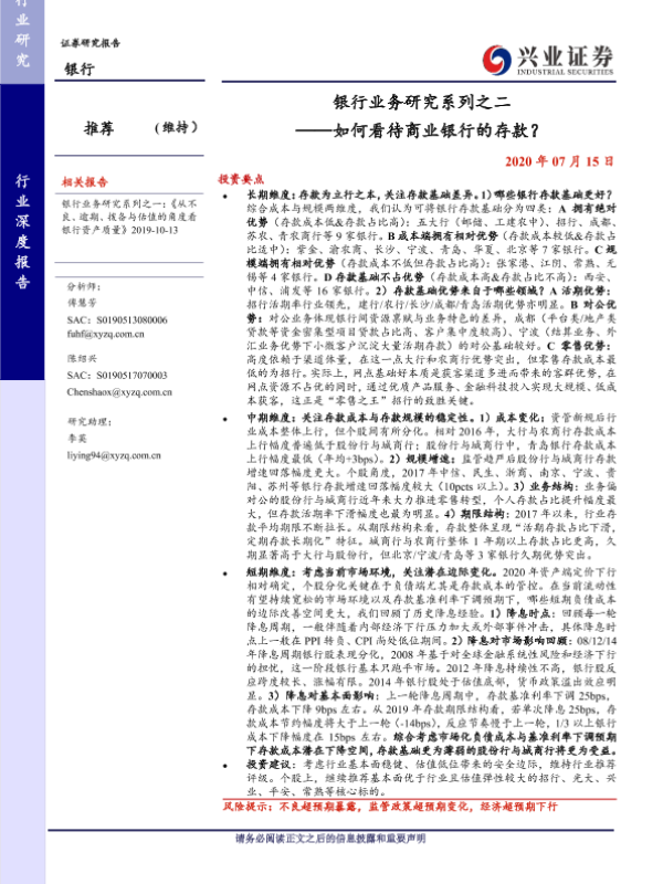 【兴业证券】【20200715】银行业务研究系列之二 ——如何看待商业银行的存款?-30页 行业研究