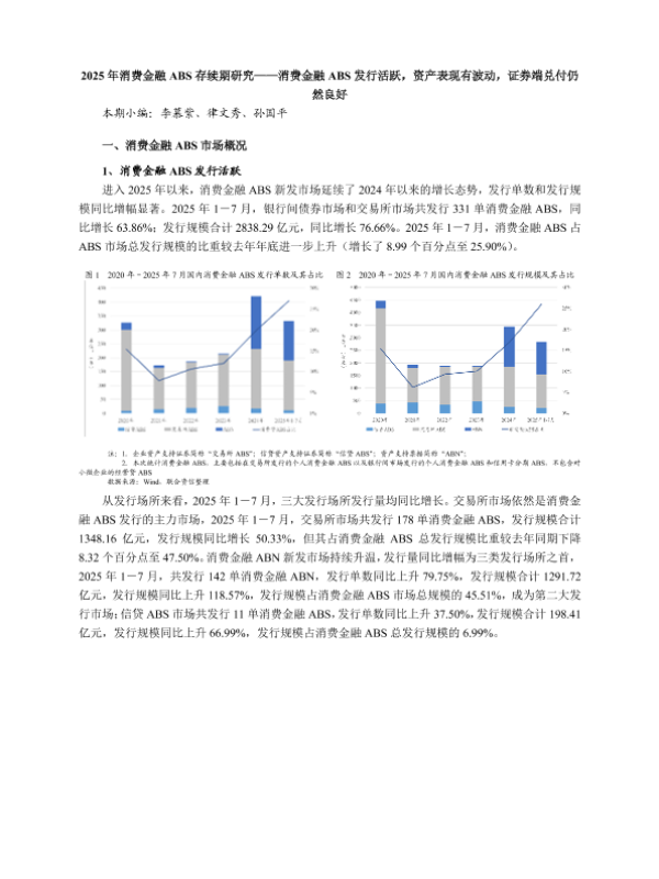 【李慕紫律文秀孙国平】【20250827】2025年消费金融 ABS存续期研究-消费金融 ABS发行活跃-资产表现有波动-证券端兑付仍然良好-8页 行业研究