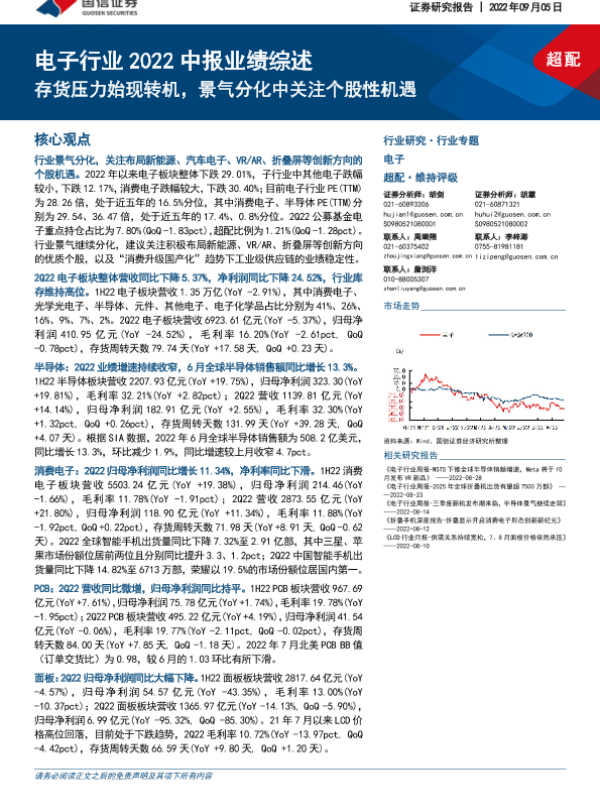 【国信证券】【20220905】电子行业2022中报业绩综述:存货压力始现转机,景气分化中关注个股性机遇-26页 行业研究