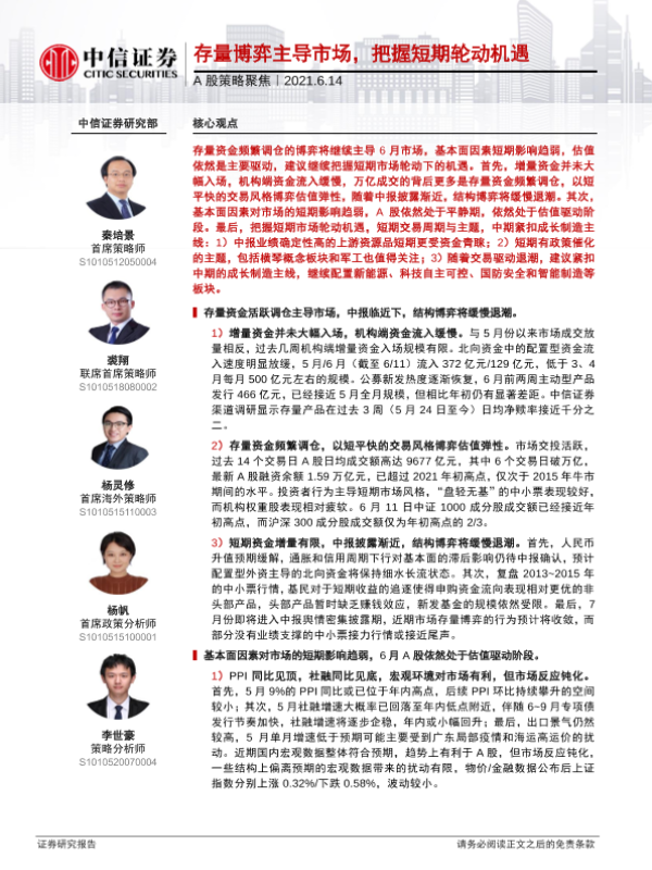 【中信证券】【20210614】A股策略聚焦:存量博弈主导市场,把握短期轮动机遇-17页 行业研究