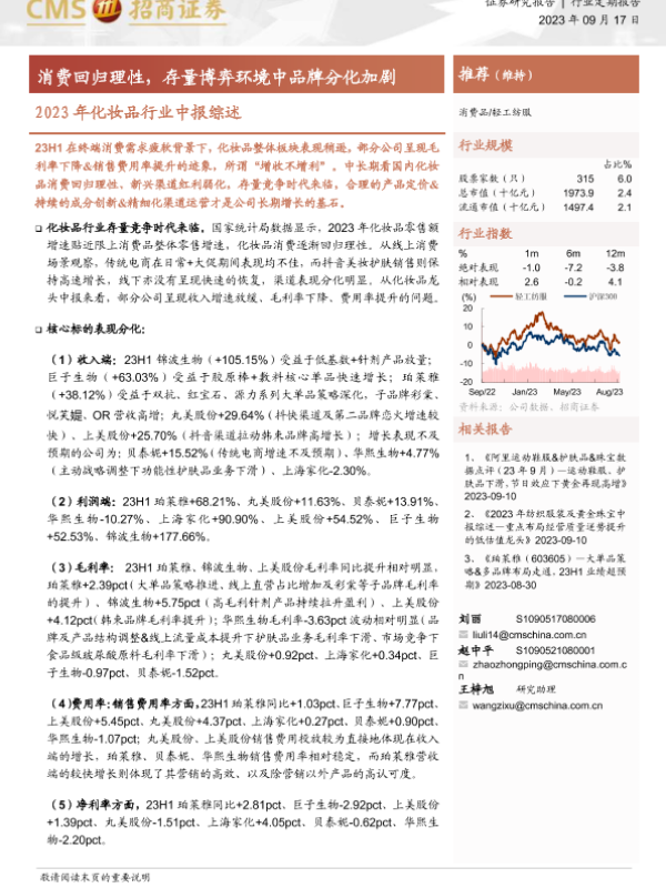 【海通证券】【20230917】2023年化妆品行业中报综述:消费回归理性,存量博弈环境中品牌分化加剧-11页 行业研究