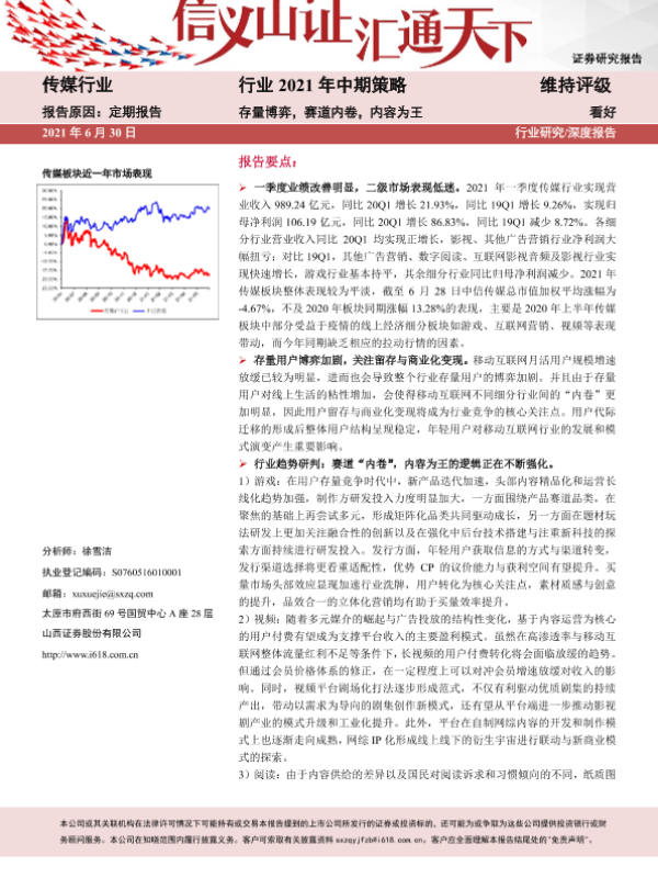 【山西证券】【20210630】传媒行业2021年中期策略:存量博弈,赛道内卷,内容为王-56页 行业研究