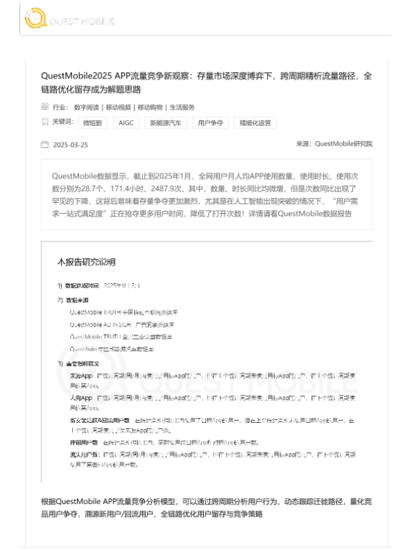【QuestMobile研究院】【202503】2025+APP流量竞争新观察:存量市场深度博弈下,跨周期精析流量路径,全链路优化留存成为解题思路-14页 行业研究
