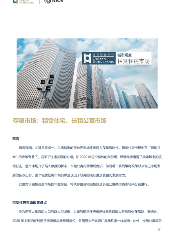 【城市测量师行】【20210208】房地产行业存量市场:租赁住宅、长租公寓市场-18页 行业研究